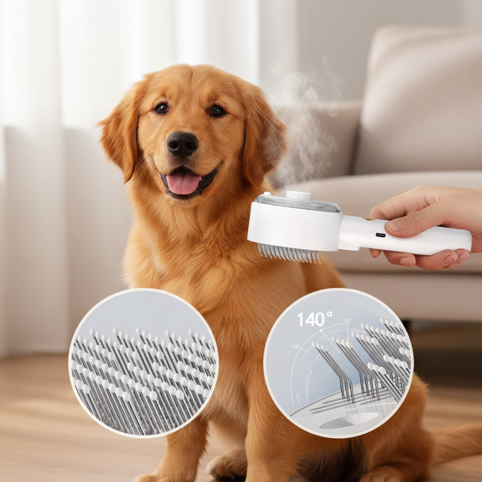 ✨ Cepillo de Vapor 4-en-1 Premium para Perros (Nube de Vapor)